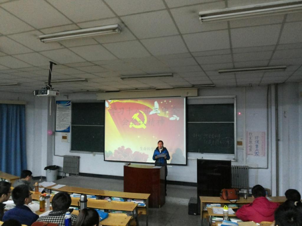 为全面贯彻党十八届三中全会精神,高举中国特色社会主义伟大旗帜,我院党总支于12月5日下午5点在正学楼第五大教室进行了政治理论学习。我院党总支副书记金靖芝老师主持会议,全体党员及部分积极分子参与会议。