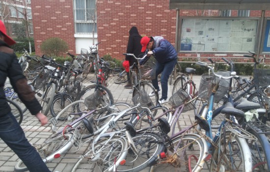 由于今天风力较大,公寓楼下的自行车大多都被刮倒,我院的学雷锋志愿者们自觉将倒在地上的自行车小心扶起,为了防止自行车再次被风刮倒,大家还共同找来了支架,绳子、石头等工具将其固定并摆放整齐。接下来,大家对那些破旧的自行车进行了整修和擦拭,对停放不当的车子也进行了归位,同时将写有温馨提示的便利贴贴在车上,提醒车主要爱护好自己的自行车,不要随意停放。头戴“小红帽”的志愿者们忙碌的身影穿梭在人流中,他们的举动感染了周围过路的同学,促使更多的人也加入到了志愿者的队伍中来。今天的天气,非但丝毫没有减弱大家学习雷锋的热情,反而让同学们更加投入与积极。活动现场流动着温暖、和谐的气氛。