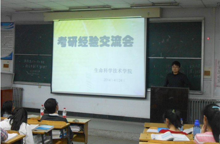 本次经验交流会一共由三位刚刚经历考研的优秀毕业生代表为同学们讲解考研技巧和经验,他们分别是生物工程专业的池秋蝶、同为生物医学工程的孙海涛和曾俊峰。首先,池秋蝶学姐对于考研科目建议下一届考生们一定要学好英语,多做相关的习题资料,针对个人情况坚持每天背诵适当的单词。紧接着,孙海涛学长为我们讲解了他在考研前、出试、复试中的经历,并强调了数学的重要性,建议大家要将课本、习题看透、吃透,达到完全理解的地步。同时也提醒课外报有辅导班的同学们不要忽视学校的专业课。随后,曾俊峰学长也跟我们分享了他在学习和生活方面的经历与经验,提出考研过程中不仅要复习好课业,更要保持健康的身体以及良好的心态。最后,在场的大三同学纷纷提出了自己的疑问,学长学姐们也为其进行详细的解答。现场气氛十分浓厚,学长学姐的精彩剖析也不时地赢得了大家的阵阵掌声。