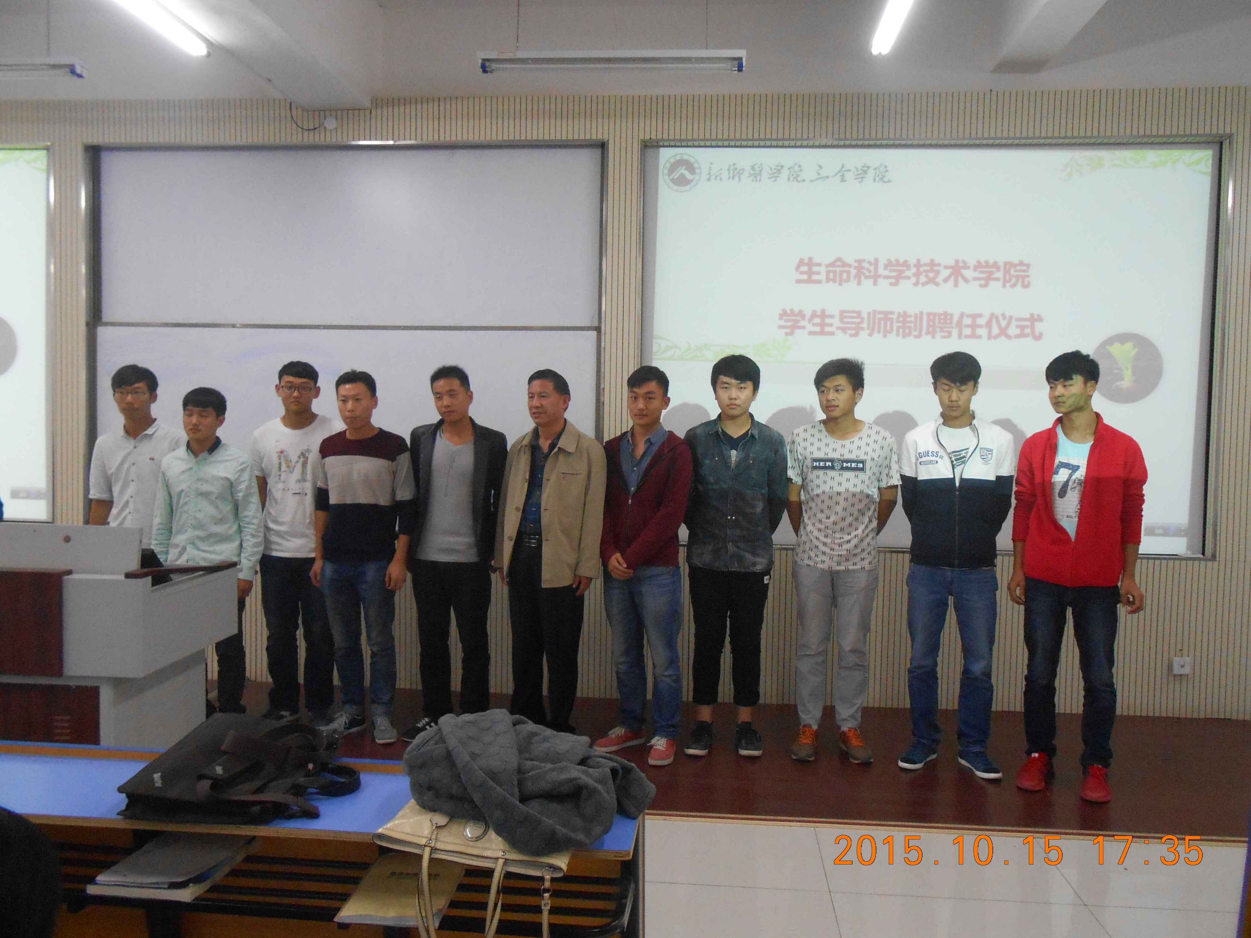 10月15日17时,生命科学技术学院联合羲和书院、仁智书院在教学楼B202教师举行学生导师聘任仪式。聘任王云龙教授、刘仲敏研究员、王林嵩教授、杨保胜教授、卢龙斗教授、丰慧根教授及生命科学技术学院全体教师为2015级和2014级生物技术专业、生物工程专业、生物制药专业155名学生导师。聘任仪式由生命科学技术学院院长丰慧根主持,学院全体教师、羲和书院和仁智书院相关教师及全体学生参加会议。