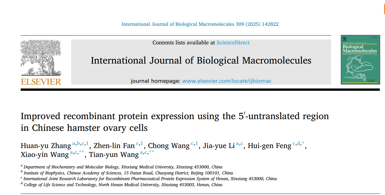 近日,国际知名期刊International Journal of Biological Macromolecules发表了我校丰慧根教授在生物学领域的研究成果。论文题目为“Improved recombinant protein expression using the 5′-untranslated region in Chinese hamster ovary cells”。新乡医学院、中国科学院、豫北医学院为共同完成单位。研究得到了国家自然科学基金及河南省科协青年托举人才项目的资助。