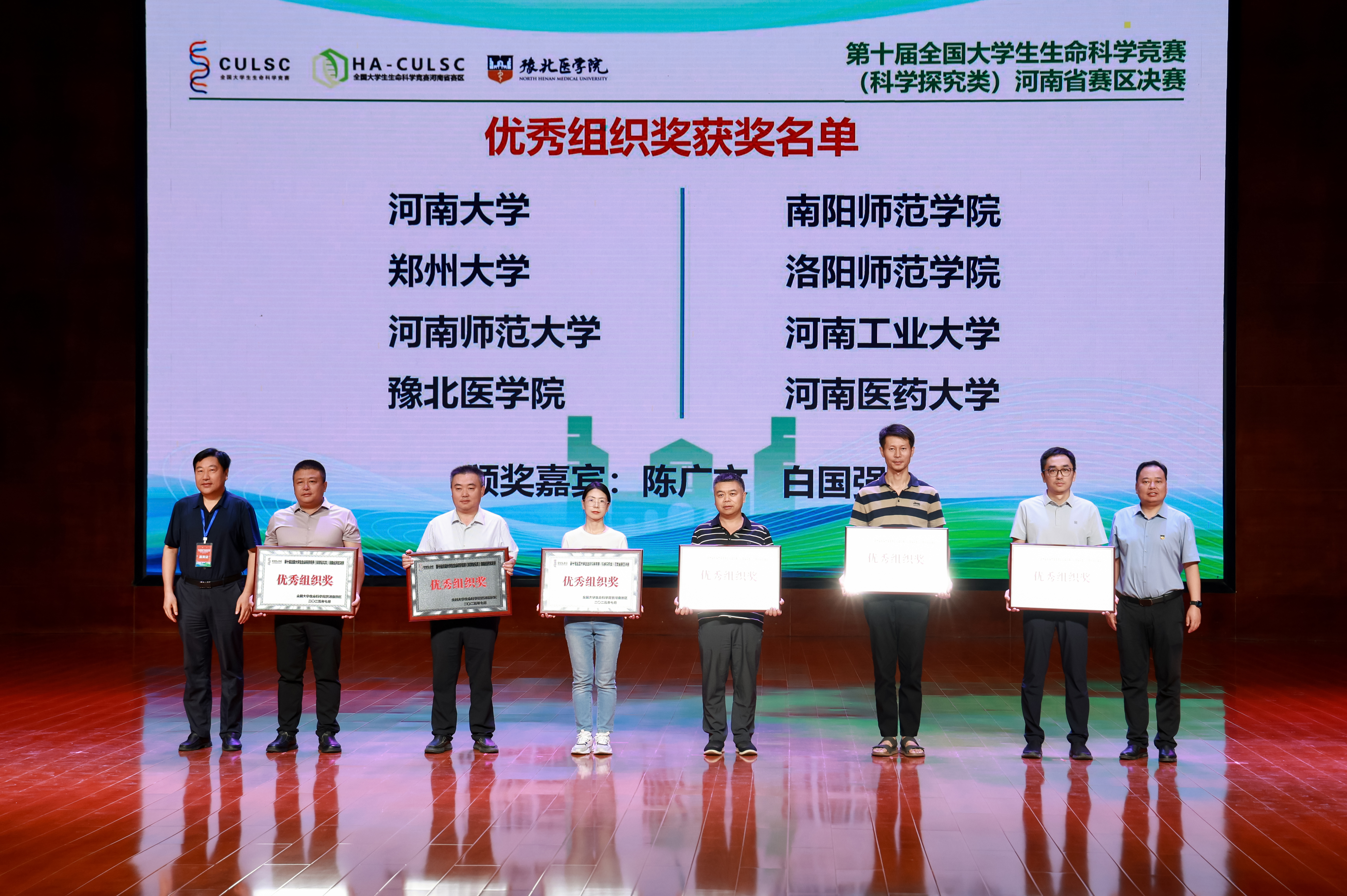 自赛事设立以来,生命科学技术学院始终秉持“以赛促学、以赛促研”的理念,持续组织师生团队深度参与各类高水平赛事。教师躬身垂范,带领学生扎根实验室,历经数年积淀,今年又获新突破:胡焕焕、孔治荭两位老师指导两支队伍勇夺河南省特等奖(对应国家一等奖),两位老师也被双双评为“优秀指导教师”;生命科学技术学院亦被授予“优秀组织单位”;此外我校的参赛队伍还获得省级二等奖3项,三等奖1项,相应的国家级奖项将随后由国家竞赛委员会公布。