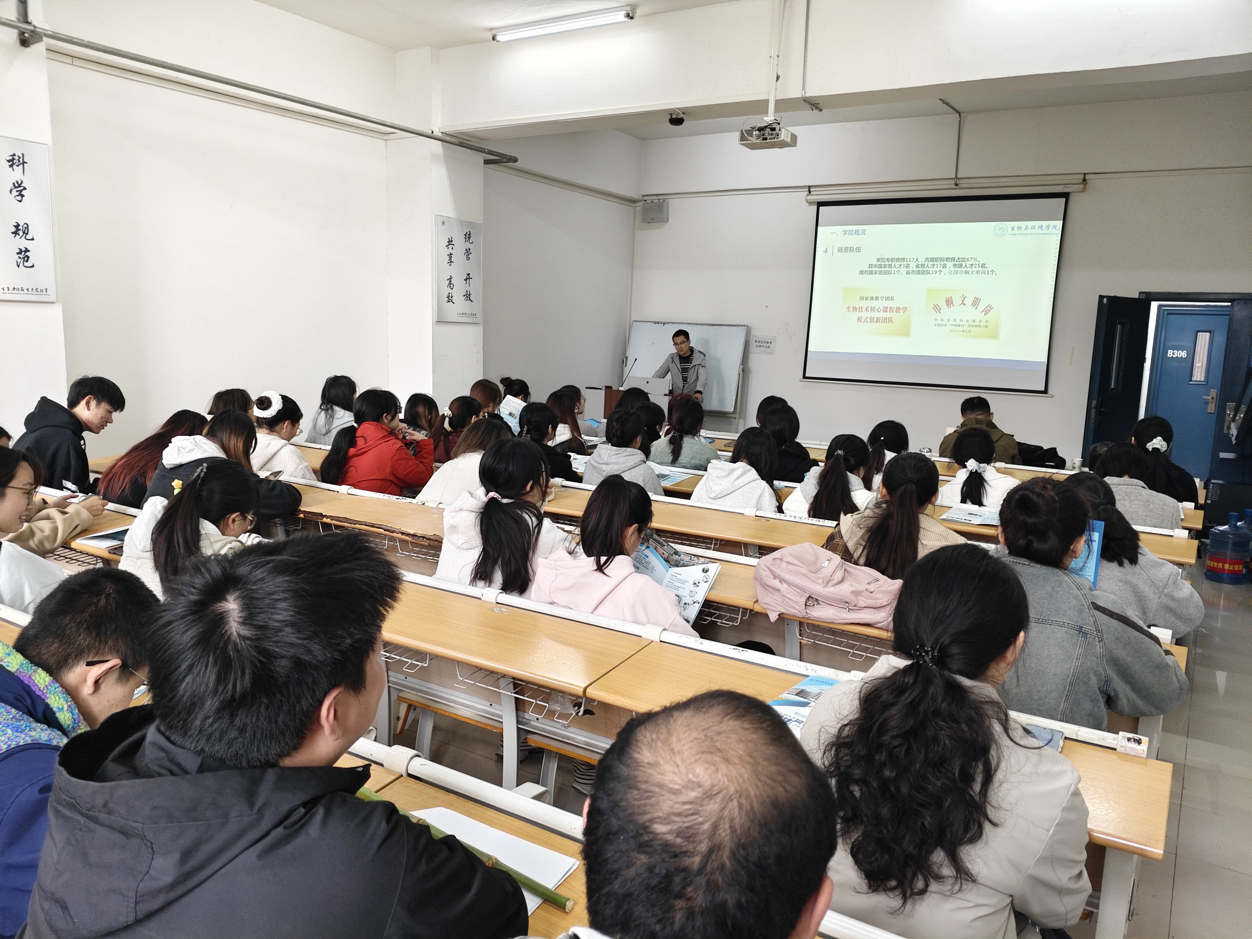 1022日下午,浙江万里学院生物与环境学院研究生招生宣讲会在我院学术交流报告厅举行。浙江万里学院教授胡海超担任主讲,我院生物专业大三、大四学生及部分教师参会。