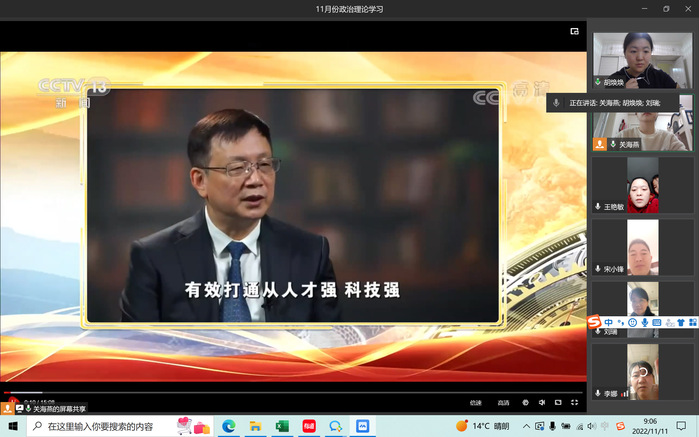 11月11日上午,生命科学技术学院党总支理论学习中心组在企业微信进行11月份政治理论学习,会议由党总支书记关海燕主持,采用领学和专题视频学习的形式进行,党总支理论学习中心组全体成员参加。会议首先进...