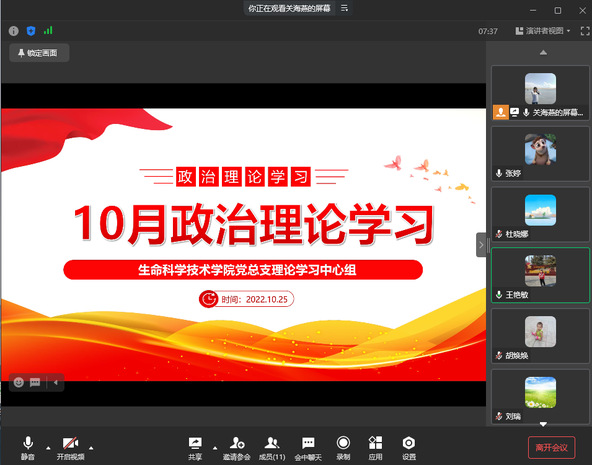 10月25日上午,生命科学技术学院党总支理论学习中心组在企业微信进行10月份政治理论学习,会议由党总支书记关海燕主持,采用领学和专题报告的形式进行,党总支理论学习中心组全体成员参加。会议首先进行第...