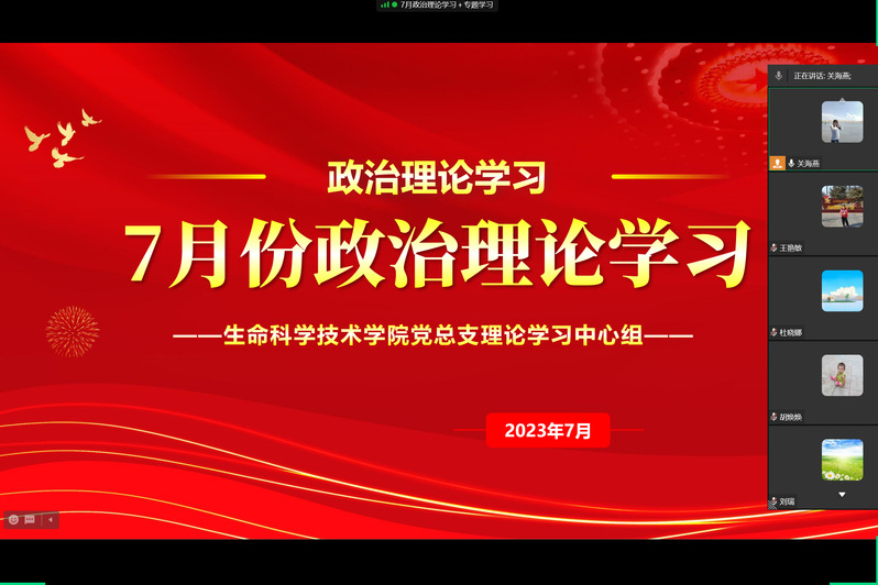 7月11日上午,生命科学技术学院党总支理论学习中心组在企业微信进行7...