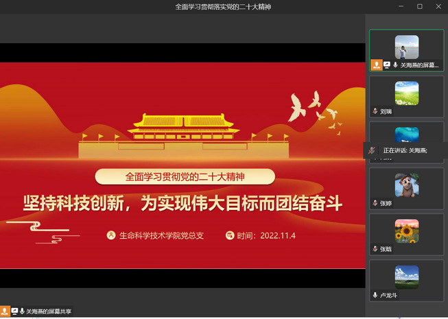 坚持科技创新,为实现伟大目标而团结奋斗——生命科学技术学院党总支专题学习研讨党的二十大精神